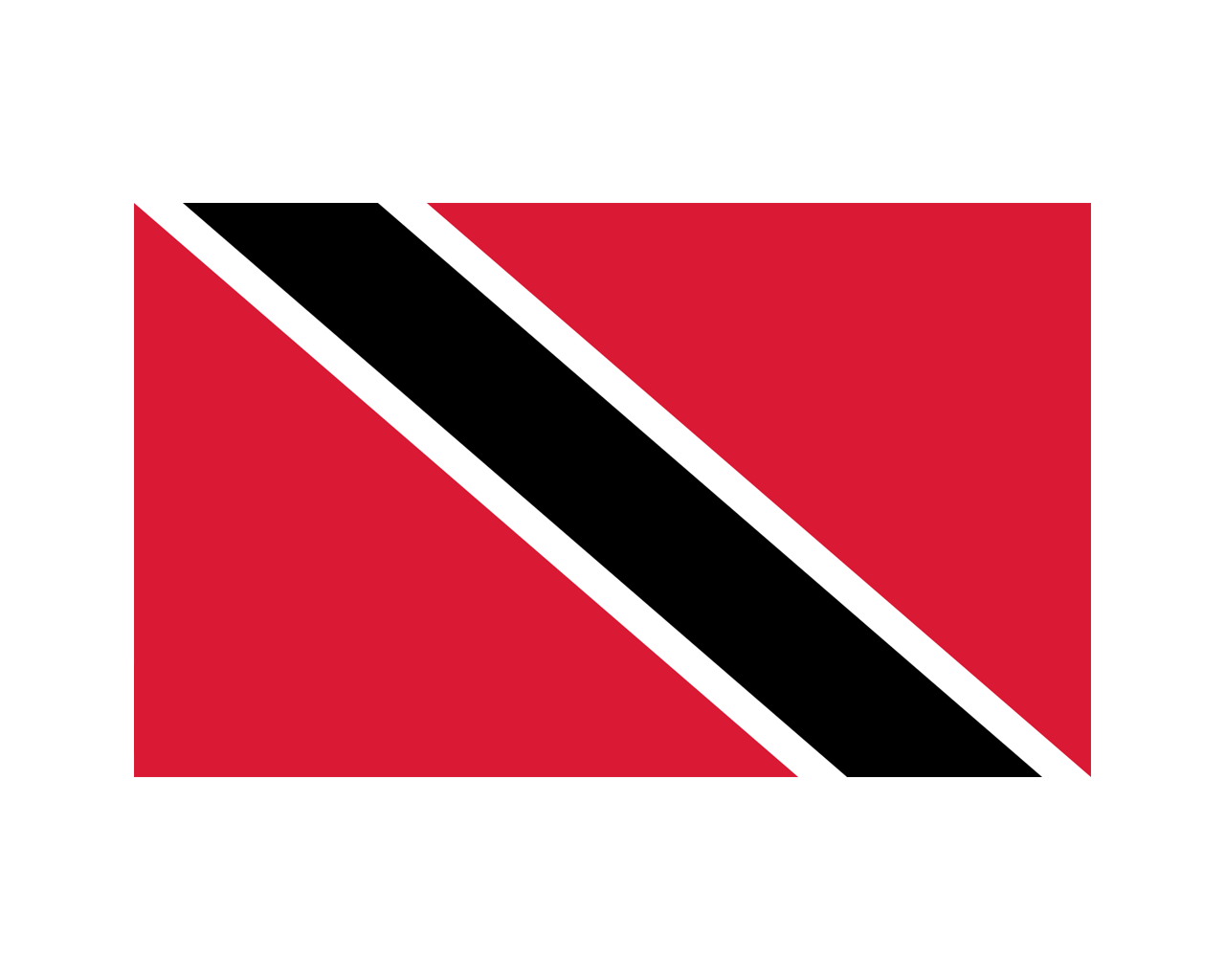 特立尼達和多巴哥共和國(Republic of Trinidad and Tobago),位于中美洲加勒比海南部,緊鄰于委內(nèi)瑞拉外海,首都西班牙港。特立尼達和多巴哥國旗呈長方形,長與寬之比為5:3。旗地為紅色,一道從左上角斜貫至右下角的黑色寬帶將紅色旗面分成兩個相等的直角三角形,黑色寬帶兩側(cè)有兩道細白邊。紅色代表國家和人民的生命力,還象征溫暖和太陽的熱能;黑色象征人民的力量和獻身精神,也象征國家的統(tǒng)一和財富;白色象征國家的未來和海洋。兩個三角形代表特立尼達島和多巴哥島。