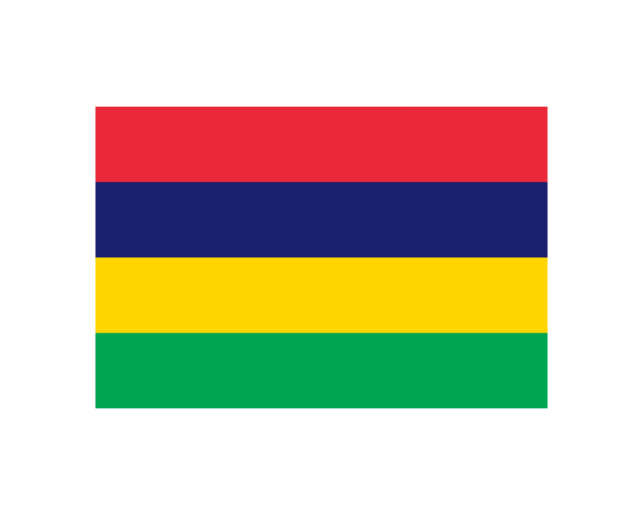 毛里求斯共和國(The Republic of Mauritius),簡稱毛里求斯,為非洲東部一島國,位于印度洋西南方。作為火山島國,毛里求斯四周被珊瑚礁環繞,島上地貌千姿百態,首都路易港。毛里求斯國旗啟用于1968年3月12日。國旗長寬之比為3:2。由紅、藍、黃、綠四個平行相等的長方形構成。紅色象征為獨立自由而斗爭,藍色表示毛里求斯位于藍色的南印度洋,黃色象征獨立的光芒照耀島國,綠色表示國家的農業和四季常青。