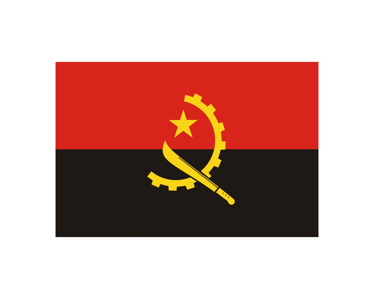 安哥拉共和國(guó)(The Republic of Angola),簡(jiǎn)稱安哥拉,位于非洲西南部,首都羅安達(dá)。安哥拉國(guó)旗啟用于1975年11月11日。國(guó)旗呈長(zhǎng)方形,長(zhǎng)與寬之比為3:2。旗地由紅、黑兩個(gè)平行長(zhǎng)方形構(gòu)成。旗面中間是相互交叉的金色弧形齒輪和柴刀。在弧形齒輪和柴刀之間有一顆金色五角星。根據(jù)安哥拉憲法說明,紅色代表了“安哥拉人民在殖民壓迫下所流的鮮血、民族自由斗爭(zhēng)與國(guó)防。”黑色表達(dá)了對(duì)“非洲大陸”的頌揚(yáng);五角星表示國(guó)際主義和進(jìn)步事業(yè),五個(gè)角象征團(tuán)結(jié)、自由、正義、民主與進(jìn)步。齒輪和砍刀象征著工農(nóng)勞動(dòng)者和軍隊(duì)的團(tuán)結(jié),并表示對(duì)早年起來進(jìn)行武裝斗爭(zhēng)的農(nóng)民和戰(zhàn)士的紀(jì)念。而國(guó)旗中的齒輪、星與柴刀的黃色比喻為國(guó)家的財(cái)富,齒輪有“工人與工業(yè)生產(chǎn)”之意,星代表了團(tuán)結(jié)和進(jìn)步,而柴刀就象征著“農(nóng)業(yè)生產(chǎn)與武裝抗?fàn)帯薄?br />