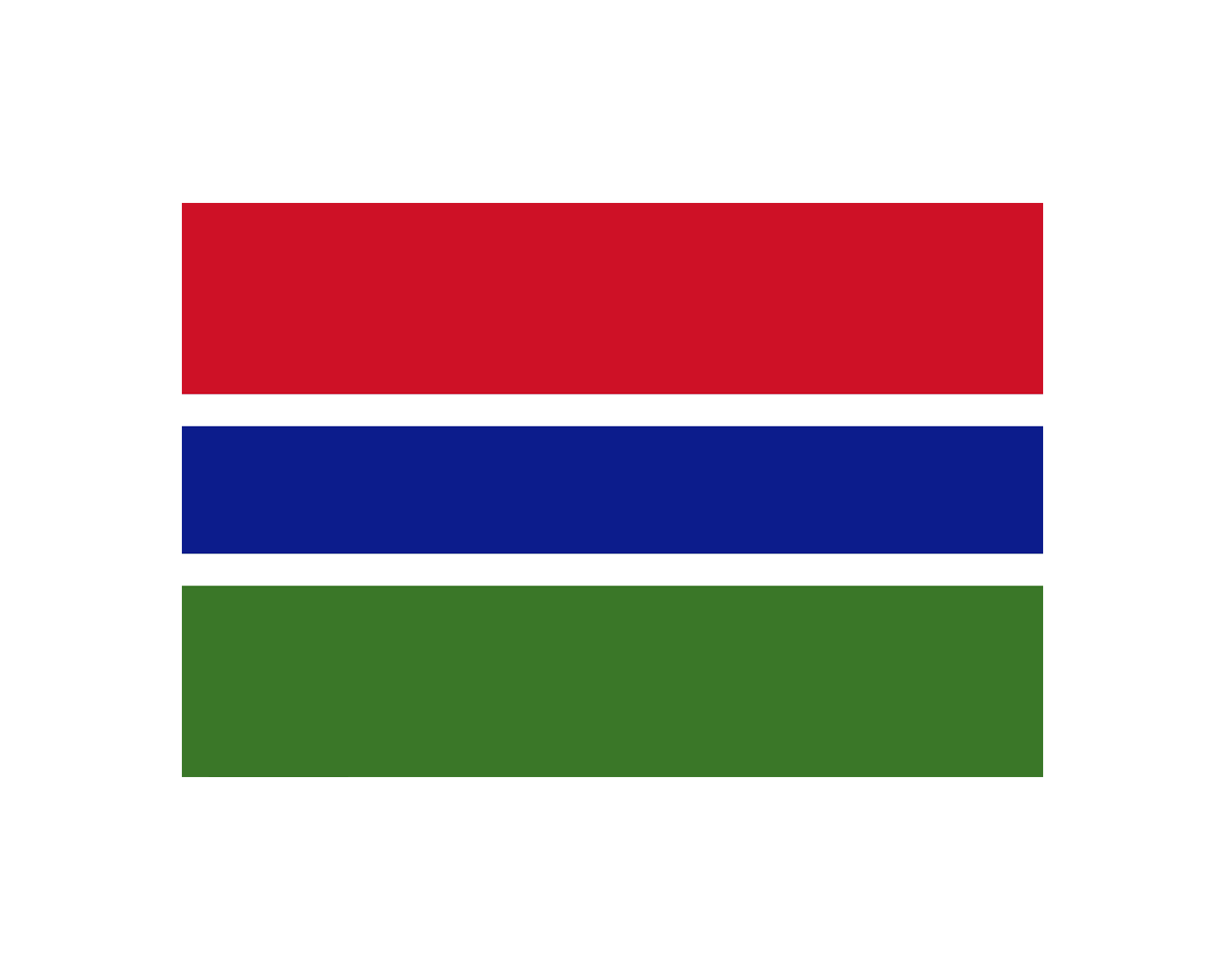 岡比亞共和國(Republic of The Gambia),簡稱岡比亞,首都是班珠爾。岡比亞國旗啟用于1965年2月18日。呈長方形,長與寬之比為3:2。自上而下由紅、藍、綠三個平行橫長方形組成,藍色與紅、綠色交接處各有一道白條。紅色象征陽光;藍色象征愛與忠誠,還代表橫貫全國東西的岡比亞河;綠色象征寬容,也象征農業;兩道白條表示純潔、和平、遵守法律,以及岡比亞人對世界人民的友好感情。