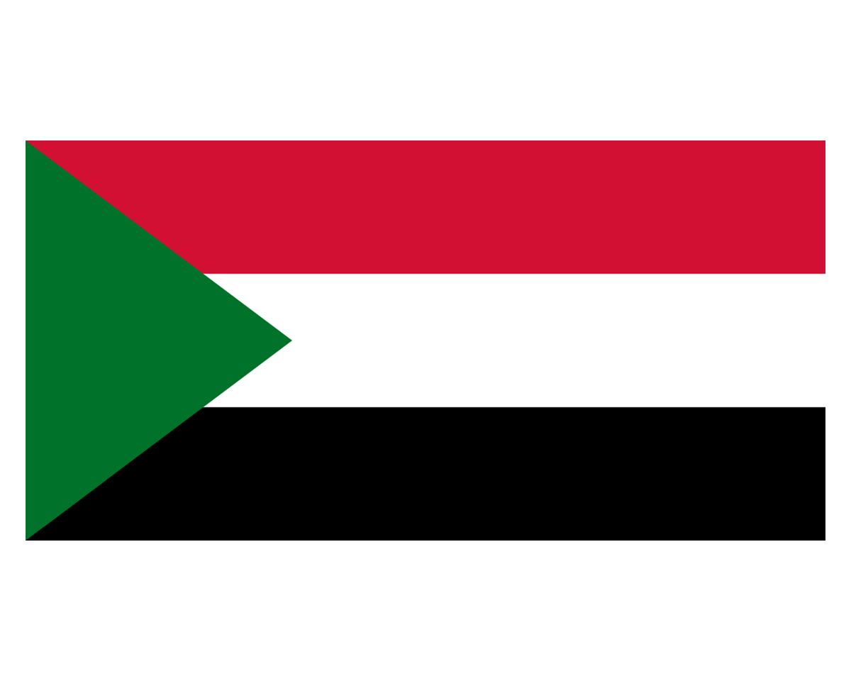 蘇丹共和國(Republic of the Sudan),簡稱蘇丹,位于非洲東北部、紅海沿岸、撒哈拉沙漠東端,首都喀土穆。蘇丹國旗呈橫長方形,長與寬之比為2∶1。靠旗桿一側(cè)為綠色等腰三角形,右側(cè)為三個平行且寬度相等的寬條,自上而下依次為紅、白、黑三色。紅色象征革命與進步,白色象征和平,黑色象征屬非洲黑色人種的南方居民(注:南部地區(qū)已于2011年7月9日獨立,成立南蘇丹共和國),綠色象征北方居民所信奉的伊斯蘭教以及繁榮、幸福。