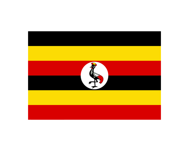 烏干達(dá)共和國(guó)(The Republic of Uganda),簡(jiǎn)稱烏干達(dá)。是位于非洲東部的國(guó)家,橫跨赤道,有“高原水鄉(xiāng)”之稱。烏干達(dá)國(guó)旗啟用于1962年10月9日,國(guó)旗呈長(zhǎng)方形,長(zhǎng)與寬之比為3:2。自上而下由黑、黃、紅三色相間的六道平行相等的寬條組成,旗面中央有一白色圓地,其中為一只烏干達(dá)國(guó)鳥——皇冠鶴。黑色代表烏干達(dá)人民,象征黑人;黃色象征陽(yáng)光;紅色象征自由,三色組合的含義為陽(yáng)光照耀下烏干達(dá)人民獲得獨(dú)立自由。在重要場(chǎng)合或正式升旗儀式上,使用帶國(guó)鳥圖案的國(guó)旗;一般場(chǎng)合則用無國(guó)鳥圖案的黑、黃、紅的色條旗。