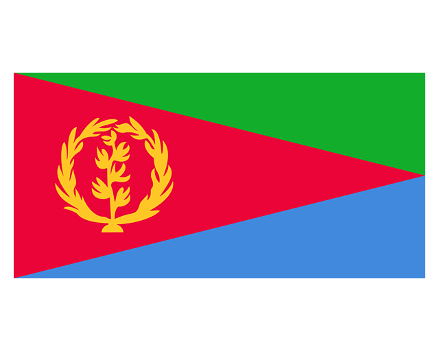 厄立特里亞位于非洲東北部,地形以高原和平原為主,厄立特里亞是世界最不發(fā)達(dá)國家之一,首都是阿斯馬拉。厄立特里亞國旗呈長方形,長與寬之比為3:2。旗面由三個(gè)三角形構(gòu)成,靠近旗桿為紅色等腰三角形。紅色部分中有一個(gè)由三枝黃色橄欖枝構(gòu)成的圓形圖案。紅色象征為爭取獨(dú)立解放而斗爭,綠色象征農(nóng)業(yè)和畜牧業(yè),藍(lán)色象征國家豐富的海洋資源和財(cái)富,黃色象征礦產(chǎn)資源,橄欖枝象征和平。