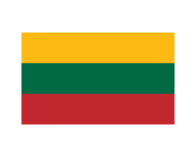 立陶宛共和國(guó)(Republic of Lithuania),簡(jiǎn)稱(chēng)立陶宛,位于波羅的海東岸,與北方的拉脫維亞和愛(ài)沙尼亞,并稱(chēng)為波羅的海三國(guó),東南鄰白俄羅斯,西南是俄羅斯的加里寧格勒州和波蘭,首都維爾紐斯。立陶宛國(guó)旗呈橫長(zhǎng)方形,長(zhǎng)與寬之比為5:3。由三個(gè)平行的橫長(zhǎng)條組成,自上而下分別為黃、綠、紅三色。立陶宛于1918年宣布獨(dú)立,建立資產(chǎn)階級(jí)共和國(guó),采用黃、綠、紅三色旗作為國(guó)旗。1940年成為原蘇聯(lián)的一個(gè)加盟共和國(guó),采用左上角有黃色五角星及鐮刀、鐵錘圖案,下部有白色窄條和綠色寬條的紅旗作為國(guó)旗。1990年宣布獨(dú)立,采用上述三色旗為國(guó)旗。2004年7月8日國(guó)旗的長(zhǎng)寬比例從2:1變成5:3。