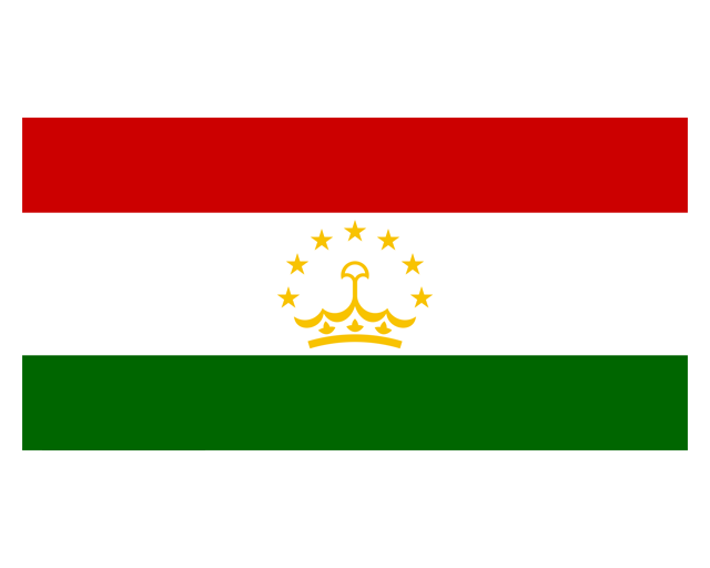 塔吉克斯坦共和國(The Republic of Tajikistan),簡稱塔吉克斯坦,是中亞五國中唯一主體民族非突厥族系的國家,也是中亞五國中國土面積最小的國家。塔吉克斯坦的首都是杜尚別,國歌為《塔吉克斯坦共和國國歌》,塔吉克斯坦國旗呈橫長方形,長與寬之比約為2:1。自上而下由紅、白、綠三個平行的橫長方形組成,白色部分中間有一頂王冠和七顆均勻分布的五角星。紅色象征國家的勝利,綠色象征繁榮和希望,白色代表宗教信仰;王冠和五角星圖案象征國家的獨立和主權。塔吉克斯坦在1929年成為原蘇聯的一個加盟共和國,1953年起采用上部有黃色五角星及鐮刀、鐵錘圖案,下部有白色和綠色橫條的紅旗。1991年9月9日宣布獨立,采用現國旗。