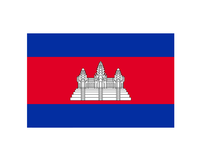 柬埔寨王國(the Kingdom of Cambodia),通稱柬埔寨,舊稱高棉,位于中南半島,西部及西北部與泰國接壤,東北部與老撾交界,東部及東南部與越南毗鄰,南部則面向泰國灣(舊稱:暹羅灣)。柬埔寨的首都是金邊,國歌《吳哥王國》,柬埔寨國旗以紅、藍及白色為主色,正中間白色殿堂為吳哥窟,被紅及藍條包圍著(線條比例1:2:1)紅色代表民族,白色代表佛教,藍色象征王室,符合柬國的國家銘言“民族、宗教、國王”。在1993年柬埔寨競選回到君主制后被重新使用。