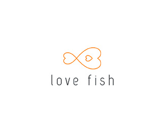 LOVEFISH心形創意標志,由線條串連的三顆紅心是該標志的主創意。