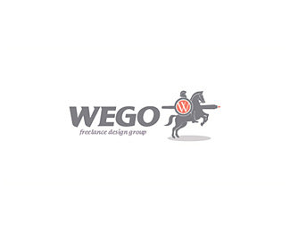 WEGO網站設計公司標志,該標志的主創意圖形是身騎戰馬的羅馬勇士,融入W3C標志和鉛筆元素。