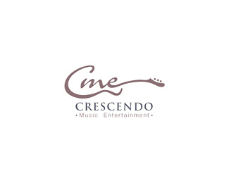 CRESCENDO搖滾樂隊(duì)標(biāo)志設(shè)計,使用英文字母“CME”的筆劃走向繪制了一個抽象的吉它圖形。
