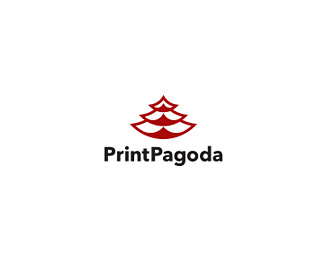 PRINTPAGODA在線打印服務標志,使用紙張的剪影構筑的立體空間是該標志的創意,紅色是主識別色。