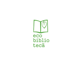 ECOBIBLIOTECA綠色圖書館標志,該圖書館位于羅馬尼亞,使用書本和葉子的結合構成的圖案作為主識別圖形,綠色是識別色。