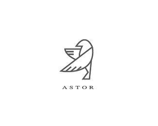 ASTOR創意品牌標志設計,站立的鳥兒是該標志的識別圖形,以線條的方式繪制。