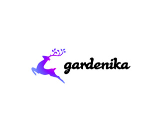 GARDENIKA園藝公司標志設計,該公司標志的識別圖形是一只飛奔中的鹿,色彩唯美。