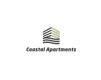 COASTALAPARTMENTS公寓樓標(biāo)志,該公司在波羅的海,使用幾何線條融入樓房和海洋元素組合成的創(chuàng)意圖形。