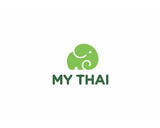MYTHAI泰國快餐店標志設計,使用動物“大象”作為餐飲店的識別圖形,整體以綠色作為主識別色。