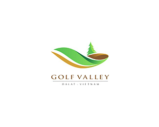 GOLFVALLEY高爾夫俱樂部標志,以寫實的方式進行主創意圖形的設計,整體以綠色和棕色為主色系。