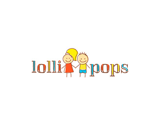 LOLLI&POPS兒童服裝品牌標志設計,整體的的本色鮮亮,符合兒童人群的定位,使用牽手的小男孩和小女孩作為主識別圖形。