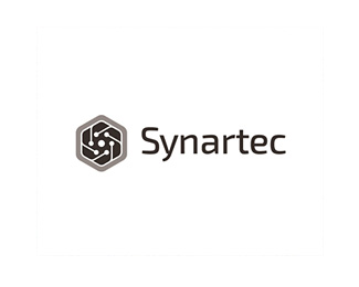 Synartec科技公司標(biāo)志設(shè)計的主識別圖形以六邊形為載體,環(huán)繞聚焦的圓點體現(xiàn)了濃厚的科技感