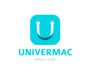 這是蘋果商店的標志,稱為“Univermac”。標志是字母U形式的帶把手的圖標包。
