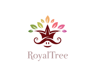該標志是一個女孩的臉與一顆彩色樹葉的大樹融合在一起。