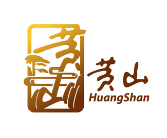 二、標(biāo)識以“黃山”二字為主線,“黃”字挺拔俊秀,“山”字敦實厚重;“黃山”二字之間的連筆剛勁有力,將黃山陡峭險峻的形象刻畫得入木三分,并產(chǎn)生一種奮力登山的動感;在流暢的行云襯托之下,“黃山” 二字還給