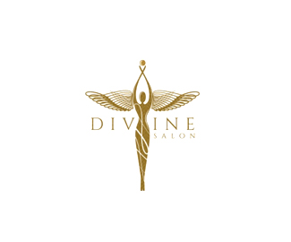 這是一個精致典雅的logo設計作品,圖中女神升騰天空,托起金球,揮舞的翅膀是設計的特色所在,logo精致到翅膀的層疊描繪。