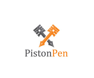 文學動力論壇圖標,圖標使用活塞和象征文學的鋼筆結合,標志結構對稱緊湊。