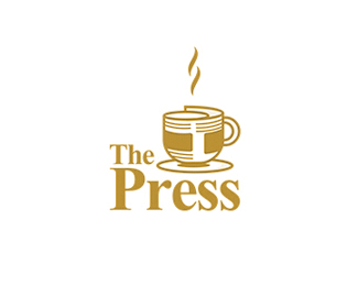 咖啡館logo設計應用了形象物的組合,標志以報刊和咖啡杯有效結合,體現了咖啡館的休閑和娛樂特征,標志使用了金色的質感,整體獨特而立體。