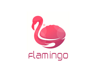 火烈鳥元素logo設計作品,以正方形比例設計的火烈鳥,圖形體現了火烈鳥的嘴部特征,色彩鮮明舒適。
