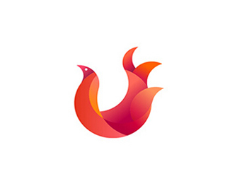火焰素材標志使用了重疊的色塊組合,飛翔的鳥圖案增強了整體的動感。