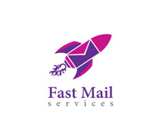 郵件元素logo設計使用了形象的郵件信封,加以火箭的素材,體現快速和高效,整體設計形象簡約,紫色的設計很獨特的色彩搭配。