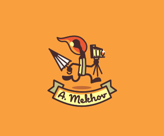 兒童攝影商標使用了可愛的卡通元素,奔跑的火柴小人手持三腳架和反光傘,標志立體,生動活潑。
