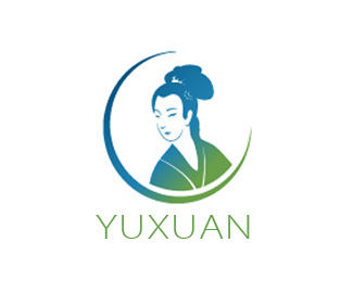 這是一家玉器銷售商的標志,標志應用了古代的女子形象設計,圓潤的造型和淡綠色的玉器色彩。
