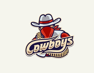 這是一個體育團(tuán)隊(duì)的logo,logo以牛仔元素設(shè)計(jì),彰顯地域文化特征,同時牛仔人物的刻畫栩栩如生,充滿征服感和西部的狂野。