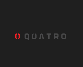 Quatro字母品牌標志設計欣賞,該標志以字母作為識別圖形,主識別圖形有點像括號,以紅色作為主識別色。