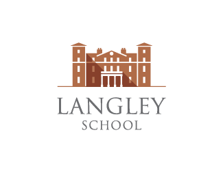 Langley蘭利學院標志設計欣賞,以學校的主建筑樓作為蘭利學院的主識別圖形,以棕色作為主識別色,可以應用于酒店、莊園等的標志設計。