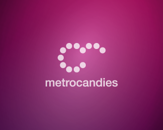 metro candies糖果地鐵標(biāo)志設(shè)計(jì)欣賞,以幾何點(diǎn)陣的方式構(gòu)成字母“M”和“C”,整體以紫紅色+白色作為識(shí)別色。