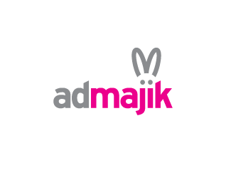 Admajik服飾標志創意設計欣賞,利用字母“J”和字母“I”的兩點作為兔子的眼睛,另外加上兔子的耳朵構成該標志的主創意圖形,以紫色作為主識別色。