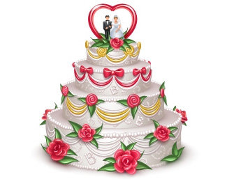豪華婚禮蛋糕寫(xiě)實(shí)圖標(biāo)設(shè)計(jì),融入婚禮、玫瑰、葉子、彩簾等元素。