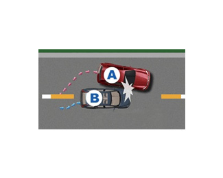 發(fā)生如上圖的越線超車事故責(zé)任認(rèn)定時(shí),A車全責(zé),中心黃色雙實(shí)線表示嚴(yán)格禁止車輛跨線超車或壓線行駛,一旦車輛因超車越線發(fā)生事故就要負(fù)責(zé)全部責(zé)任。黃色虛線可以并線,調(diào)換車道,但一旦因超車越線發(fā)生事故就將負(fù)全部責(zé)任。