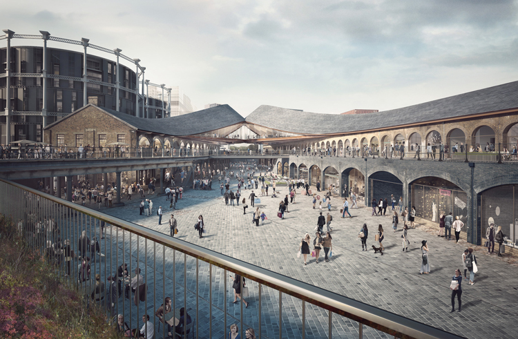 庭院游客也從豐富的戶外空間中受益。Heatherwick的團隊設計了兩個“接吻”拱門狀的建筑,重新利用了現有的兩個維多利亞時代的倉庫和火車站,它們建于1850年,用來接收來自英格蘭北部的煤炭。這就在中間留下了一個巨大的開放式庭院,這在大型購物中心中是很少見的。
