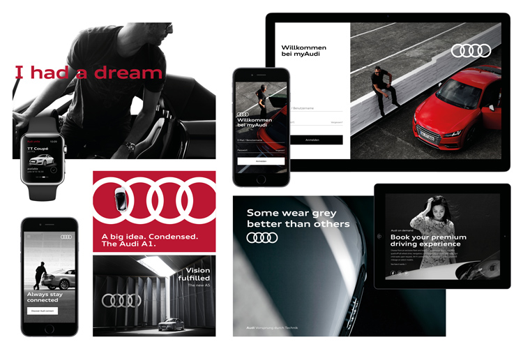 除了新企業(yè)vi設(shè)計(jì),Strichpunkt還為奧迪設(shè)計(jì)了一個(gè)品牌網(wǎng)站,該網(wǎng)站讓人們可以在網(wǎng)上自由訪問(wèn)品牌設(shè)計(jì)的指導(dǎo)原則,從排版、圖標(biāo)、字體和圖像的大小比例,到創(chuàng)建不同數(shù)字組件所需的html代碼,無(wú)所不有。